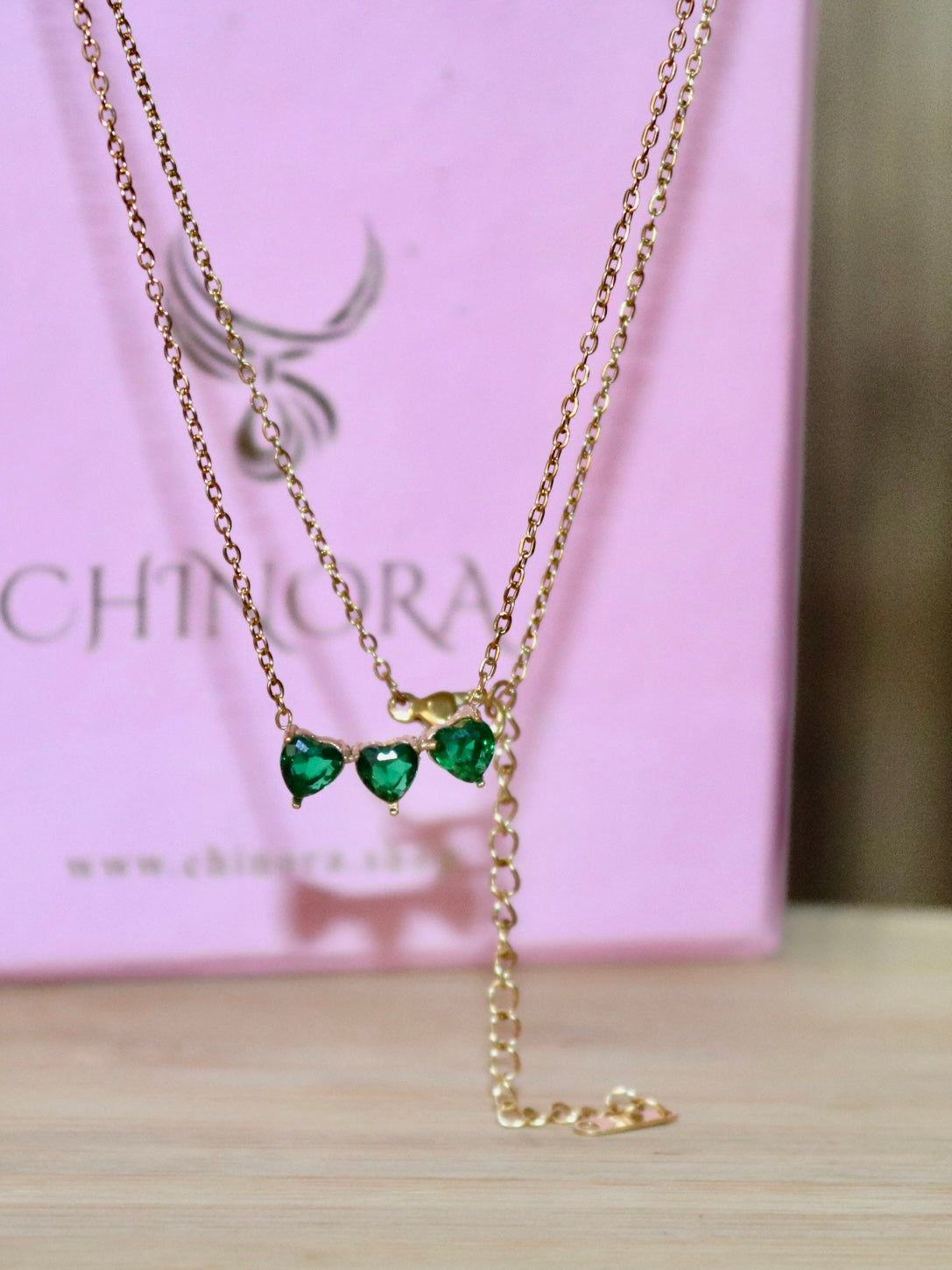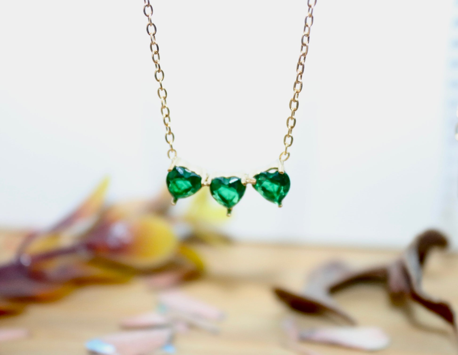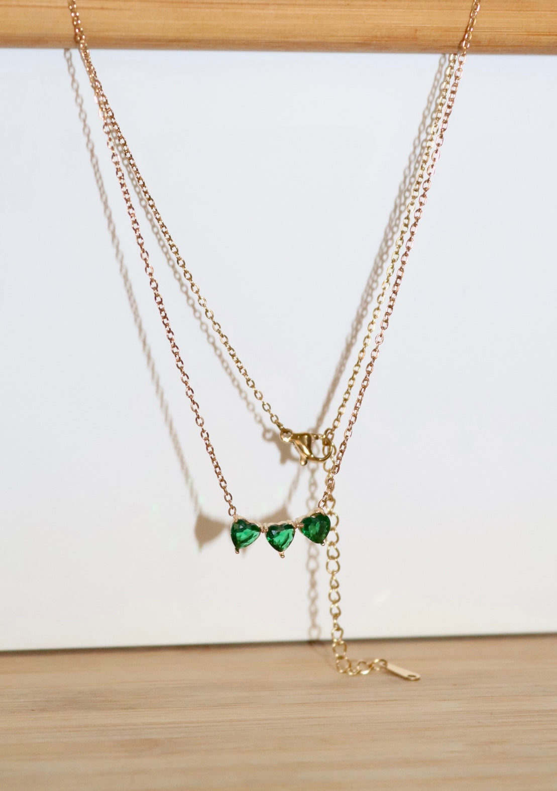 Triplet Heart Necklace Green